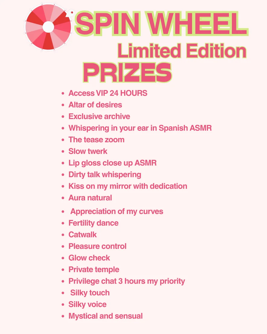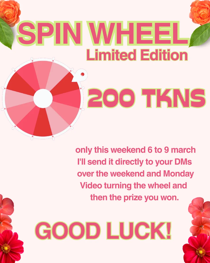 I created this special roulette wheel to celebrate my feminity with you. For every 200 tkns, you win and I feel pampered.