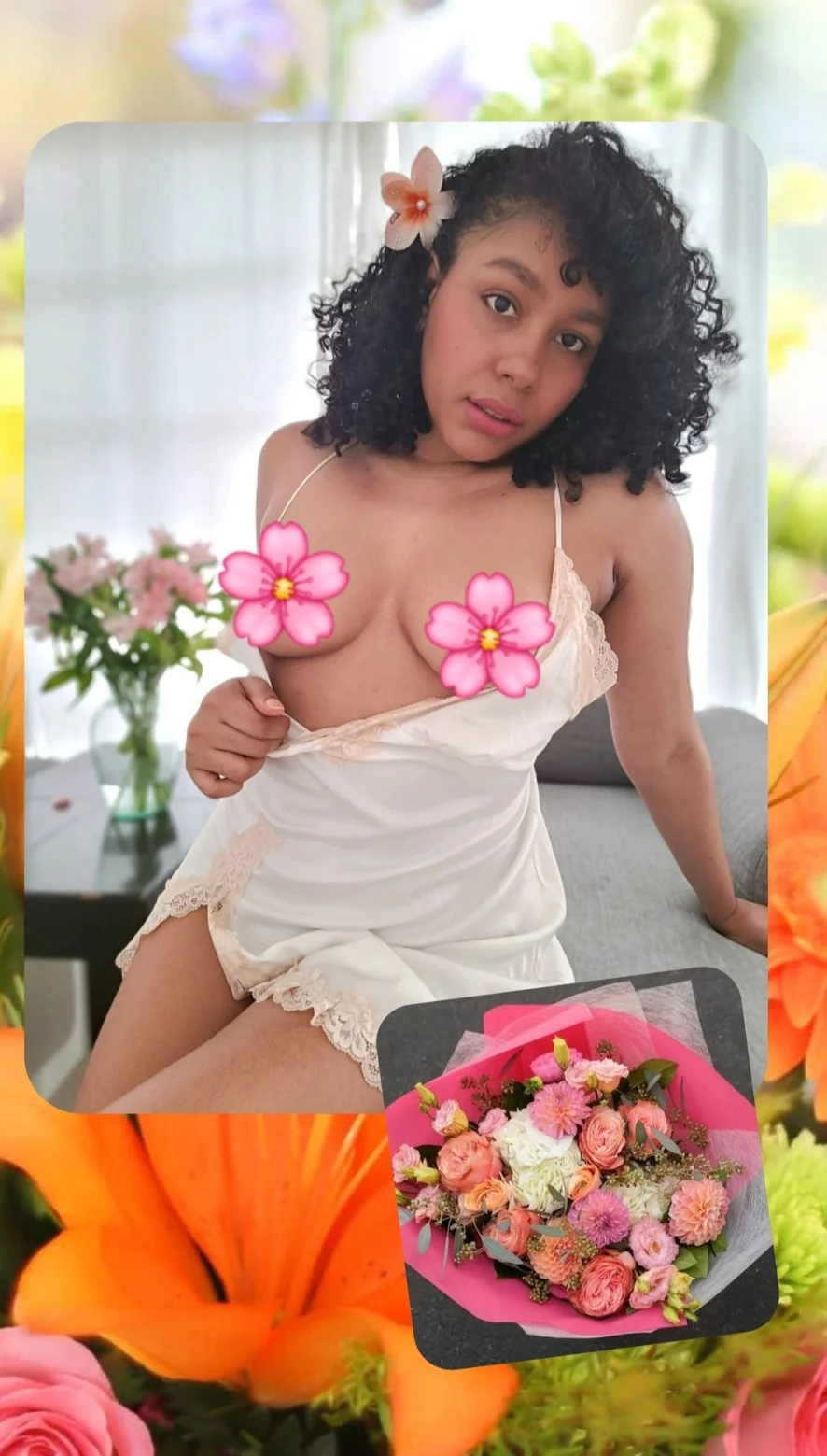 I've prepared a special set where flowers are my only accessory... Want to see how they adorn me? 🌹